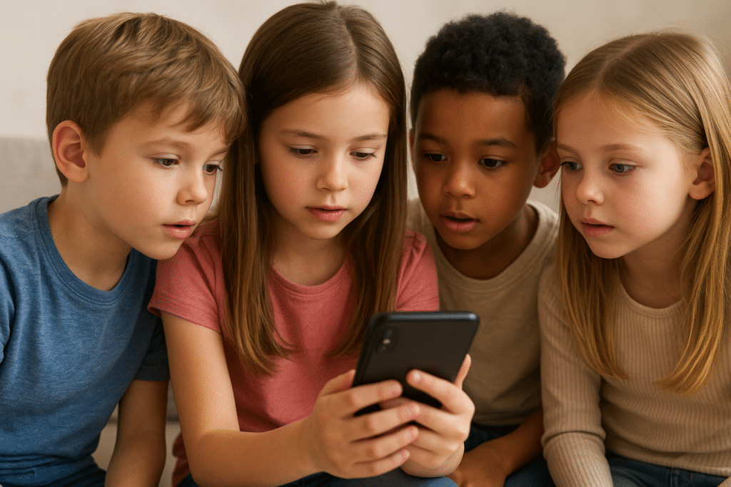 Wann soll mein Kind ein Handy bekommen? Je später, desto besser! Wichtig ist, dass Eltern wissen, was das Kind am Handy macht und darüber gesprochen wird, dass die Eltern in Verbindung bleiben mit ihrem Kind. Und: Ein Handy ist kein Spielzeug, sondern ein Mittel zur Kommunikation, das die Eltern dem Kind lediglich borgen. Auszüge aus dem Elternbildungstalk mit dem Psychiater und Suchtexperten Kurosch Yazdi-Zorn. (Foto: KI-generiert/ChatGPT)